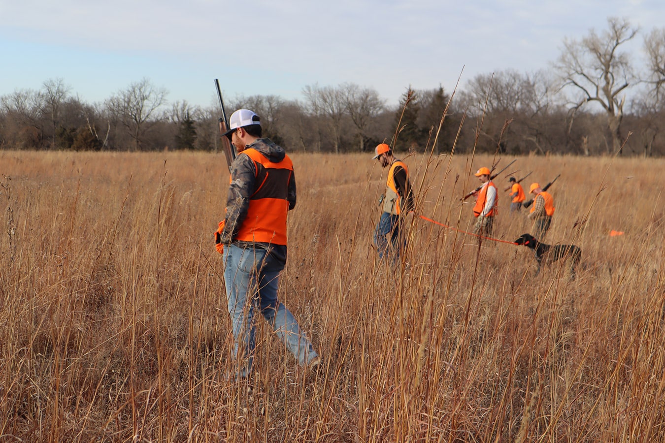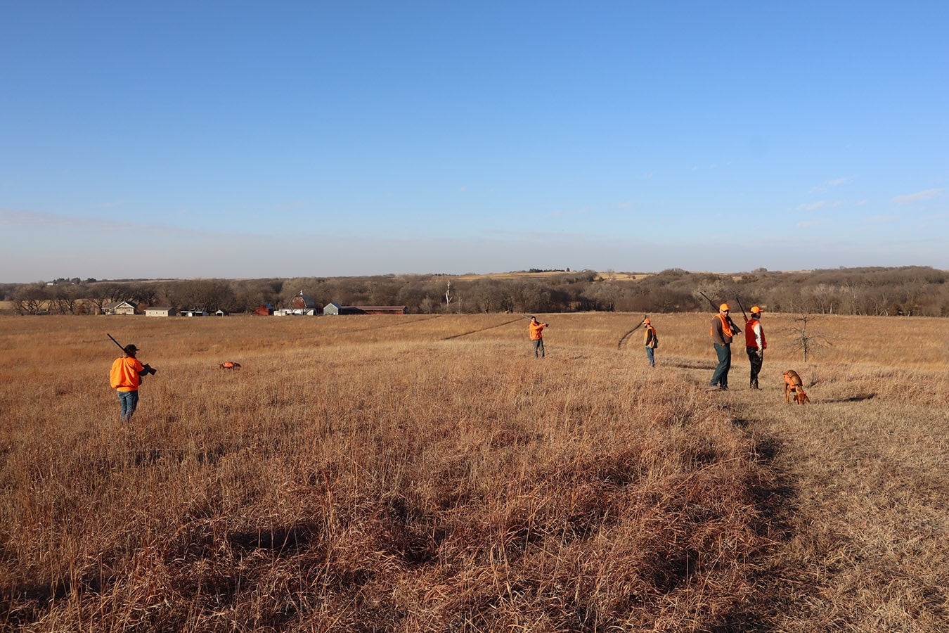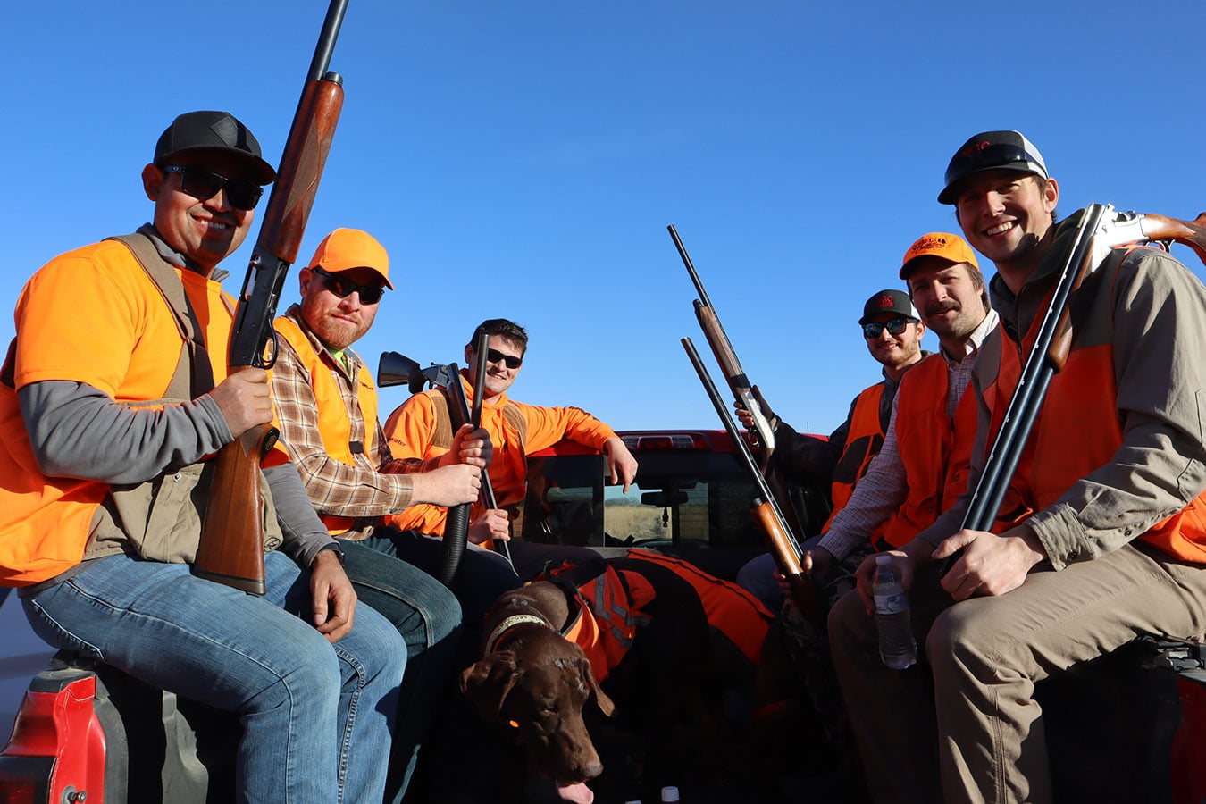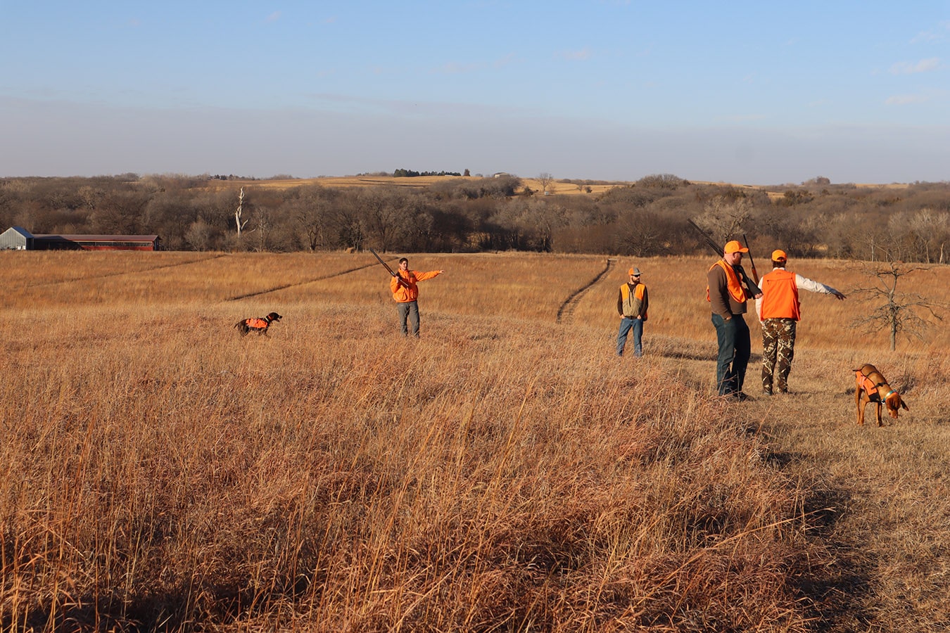 The participants dressed in all orange that met in Brainard, Nebraska include NGC’s Mitch Jones, Ryan Moore, Rees Cudaback and Jen Hall, along with Cenin Sorto of Electrical Enterprises, Dylan Mieth and Erik Wilhelm of Ramirez Contracting with Kevin Nieto of Vincentini Plumbing starring as the main MVP in the amazing showcased video! Thanks to Trevor Jones and eager bird dogs Goose, Gracie, Tank and Bella who were key contributors to a pleasant pheasant outing as well!