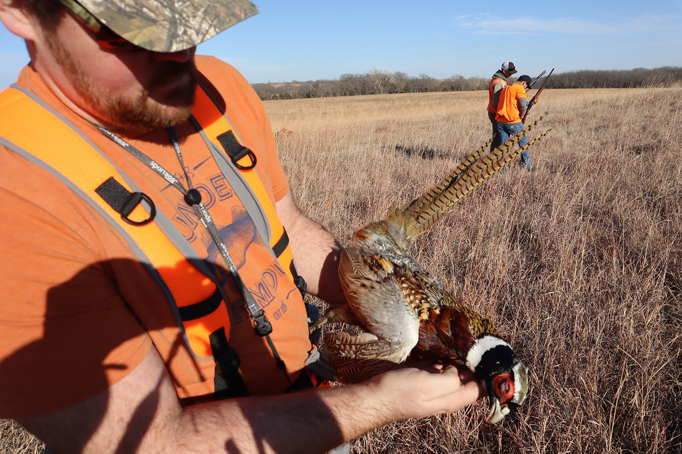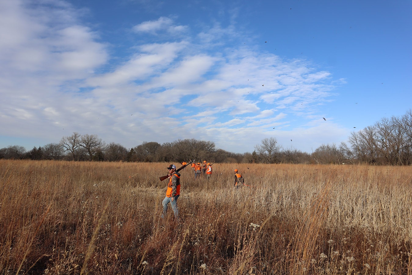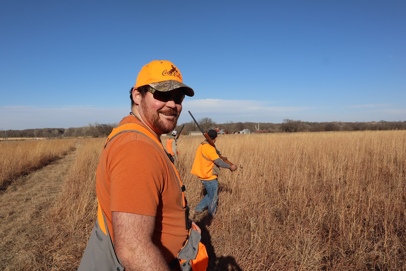 The participants dressed in all orange that met in Brainard, Nebraska include NGC’s Mitch Jones, Ryan Moore, Rees Cudaback and Jen Hall, along with Cenin Sorto of Electrical Enterprises, Dylan Mieth and Erik Wilhelm of Ramirez Contracting with Kevin Nieto of Vincentini Plumbing starring as the main MVP in the amazing showcased video! Thanks to Trevor Jones and eager bird dogs Goose, Gracie, Tank and Bella who were key contributors to a pleasant pheasant outing as well!