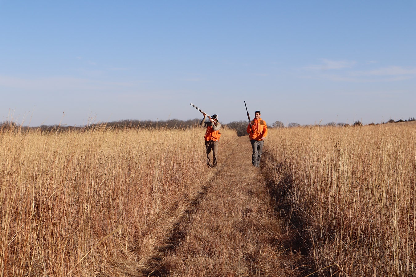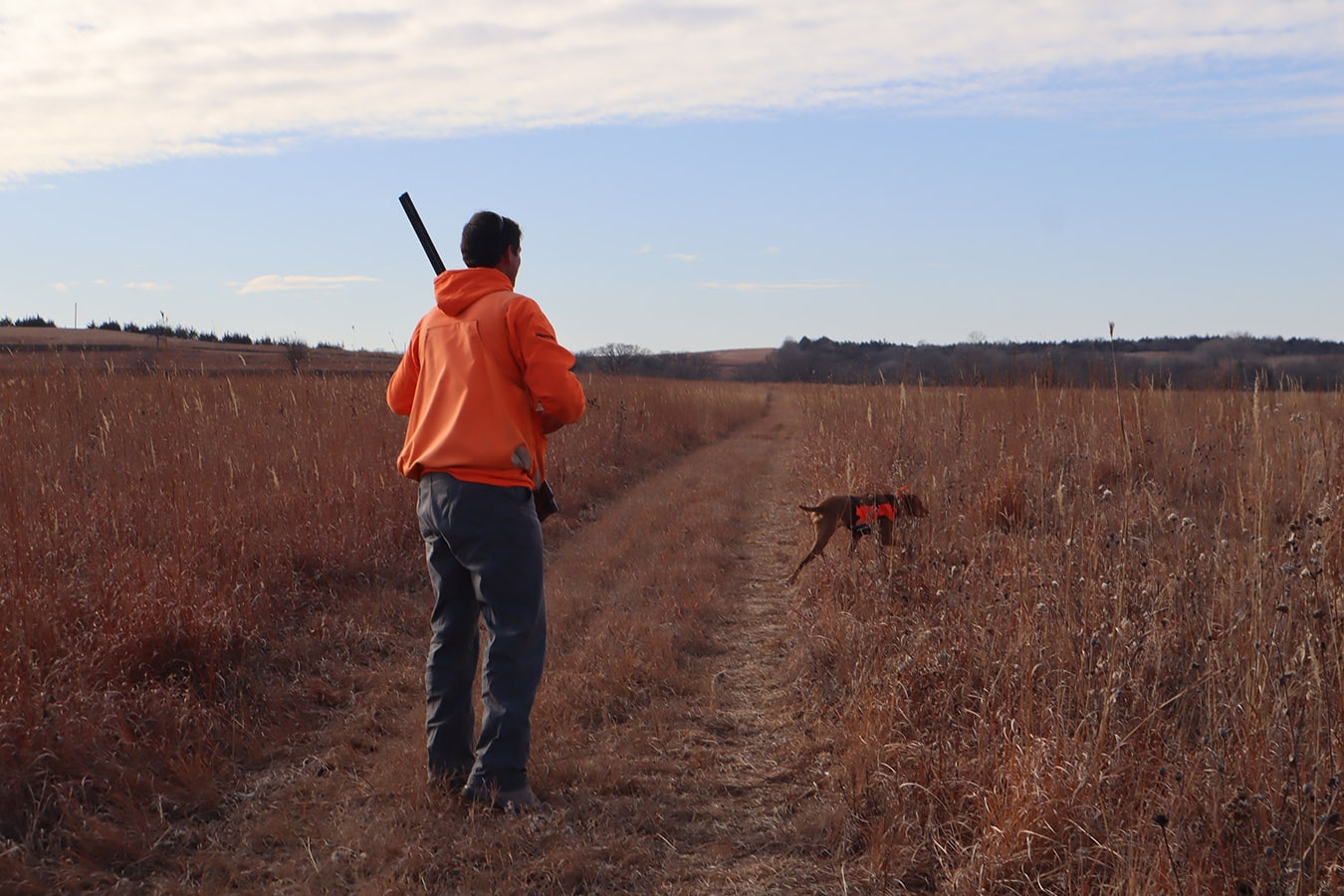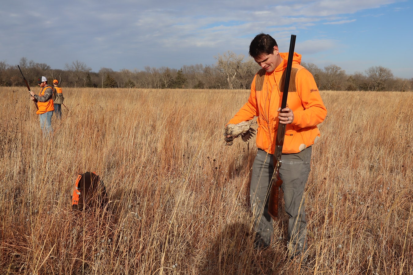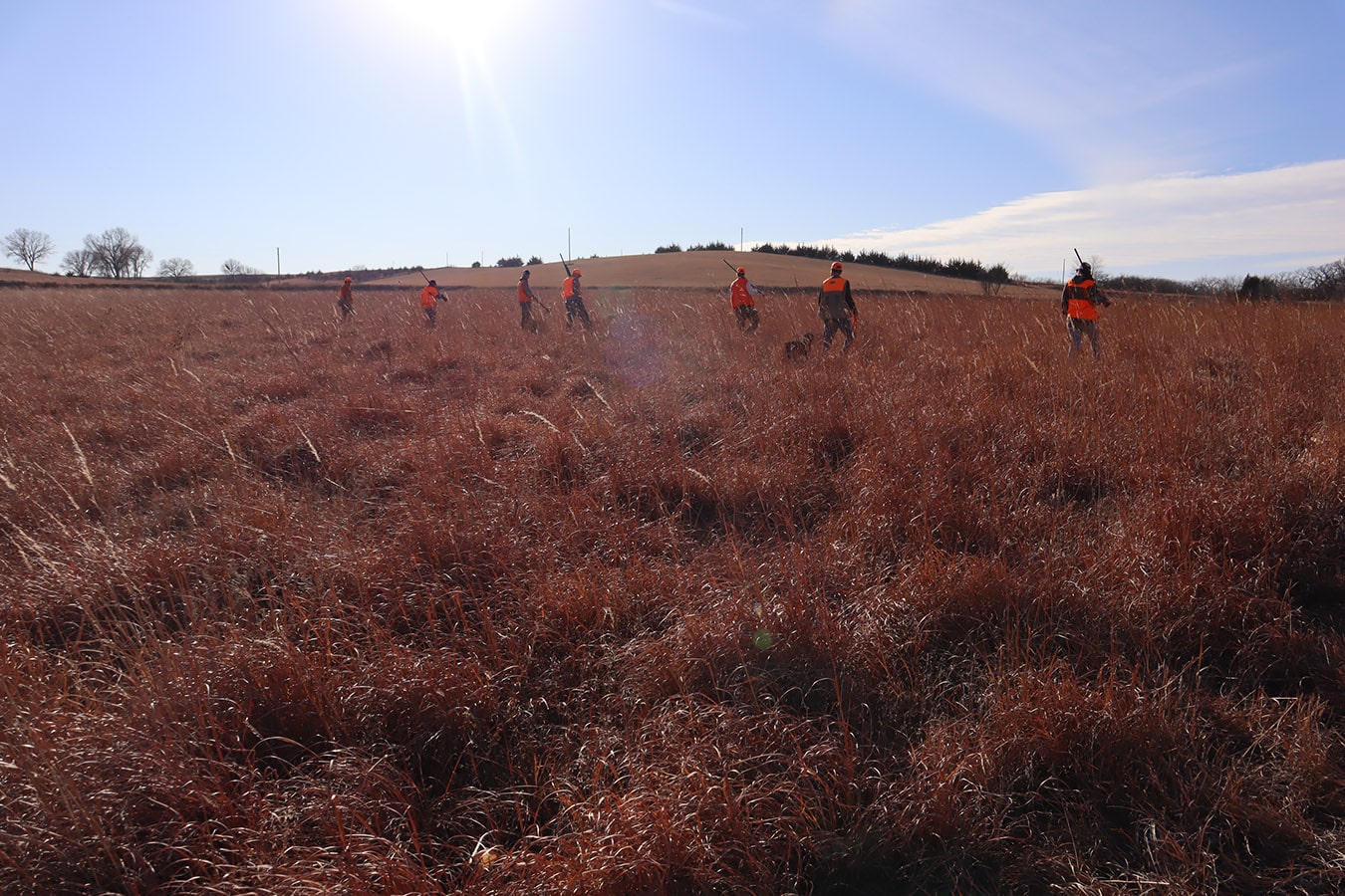 The participants dressed in all orange that met in Brainard, Nebraska include NGC’s Mitch Jones, Ryan Moore, Rees Cudaback and Jen Hall, along with Cenin Sorto of Electrical Enterprises, Dylan Mieth and Erik Wilhelm of Ramirez Contracting with Kevin Nieto of Vincentini Plumbing starring as the main MVP in the amazing showcased video! Thanks to Trevor Jones and eager bird dogs Goose, Gracie, Tank and Bella who were key contributors to a pleasant pheasant outing as well!